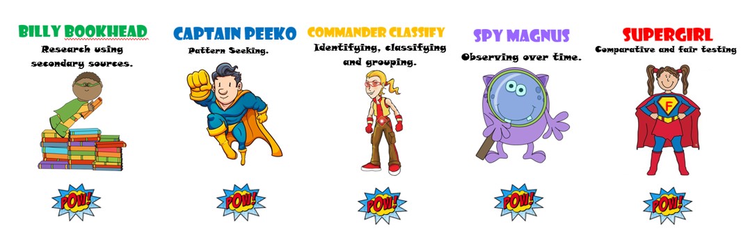 We have implemented 'Science Superheroes' as visual and conceptual representations of the five enquiry types, enabling pupils to more easily recognise, apply, and articulate different scientific approaches.