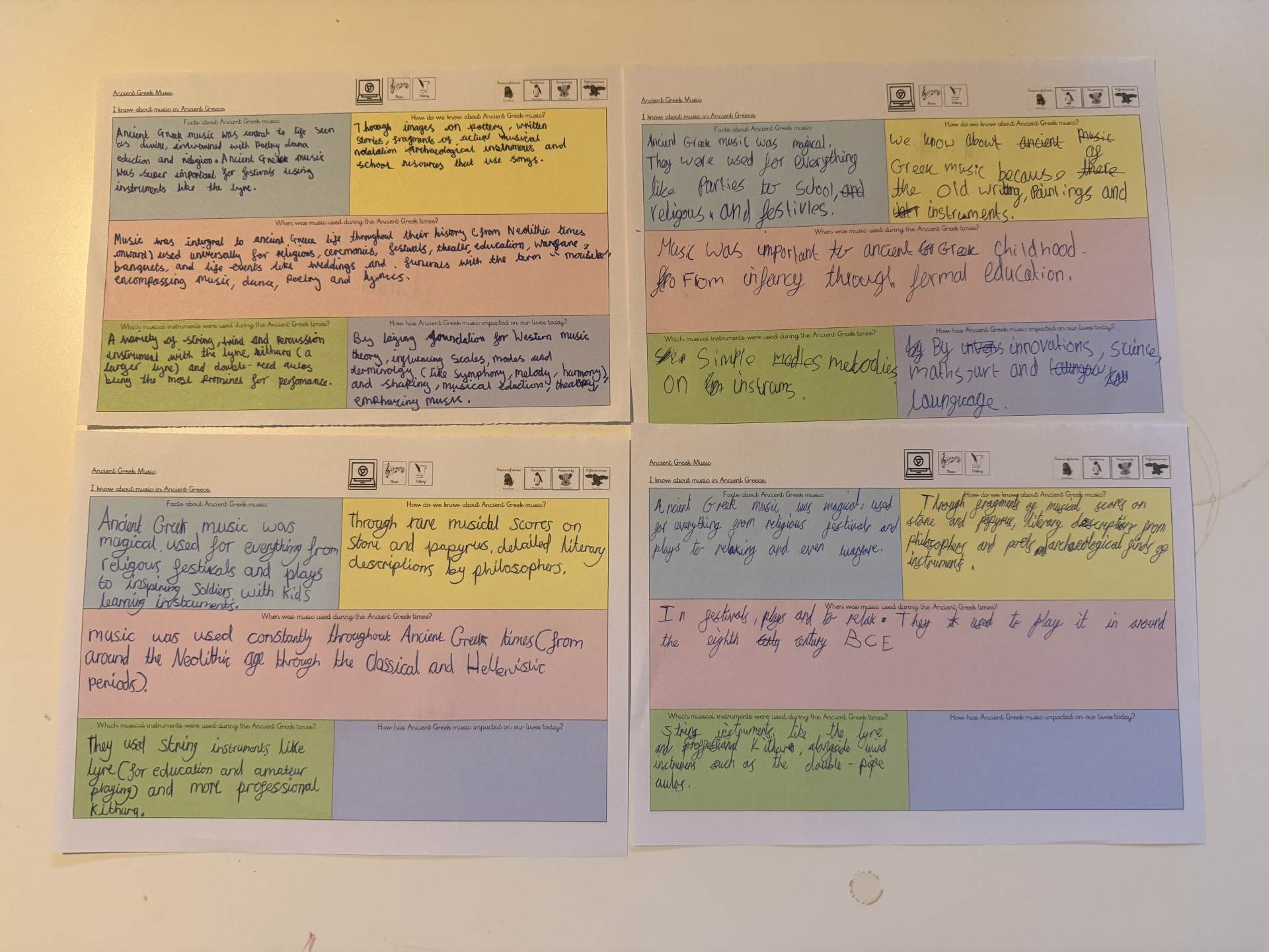 We started the half term by listening to what actual ancient Greek music may have sounded like! We also used the iPads to research music during the ancient Greek times.