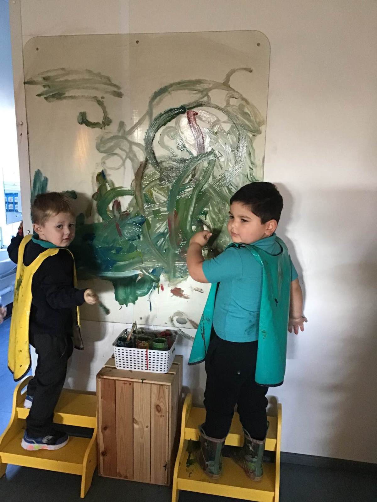 We explored cold colours through our big painting area. The children created a tundra of colours to represent the Arctic both inside and outside.