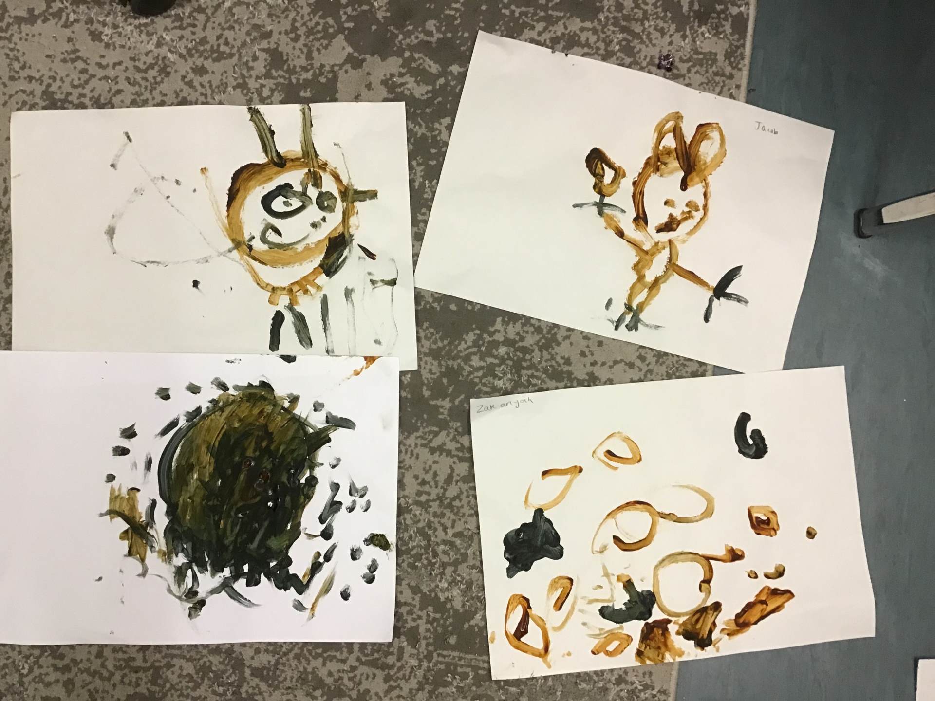 The children found out some key facts about him and then they became Jackson Pollock creating their own large scale splatter artwork.