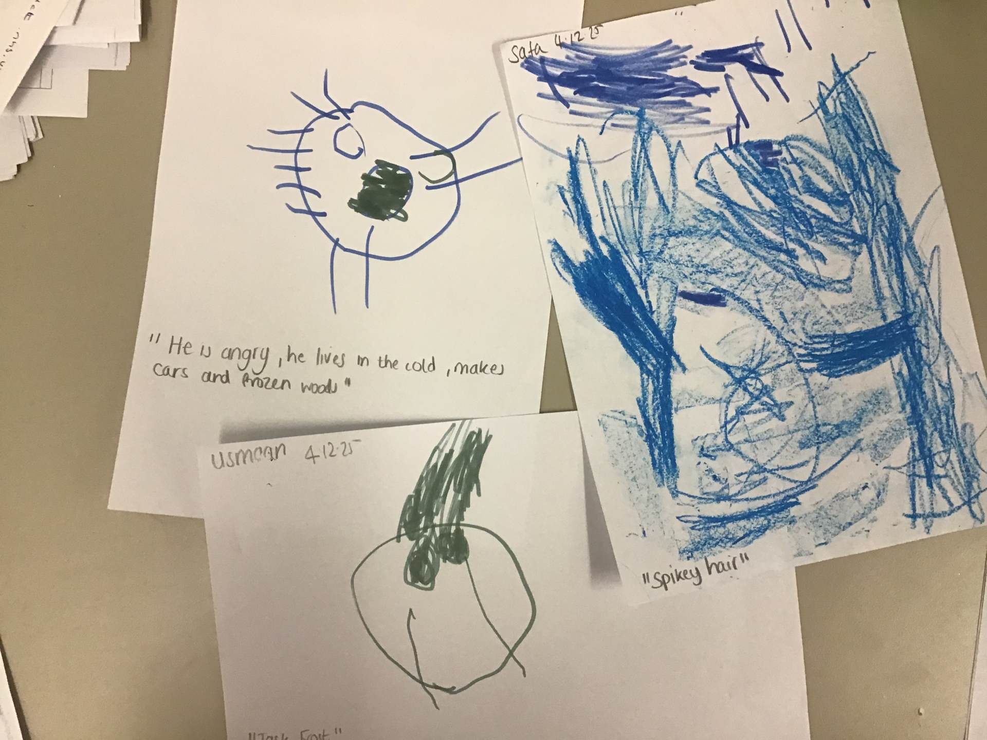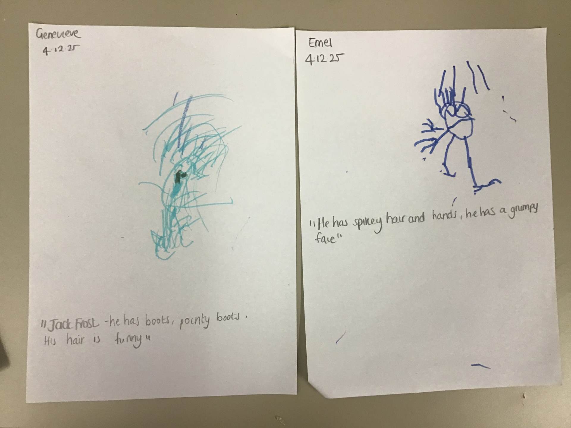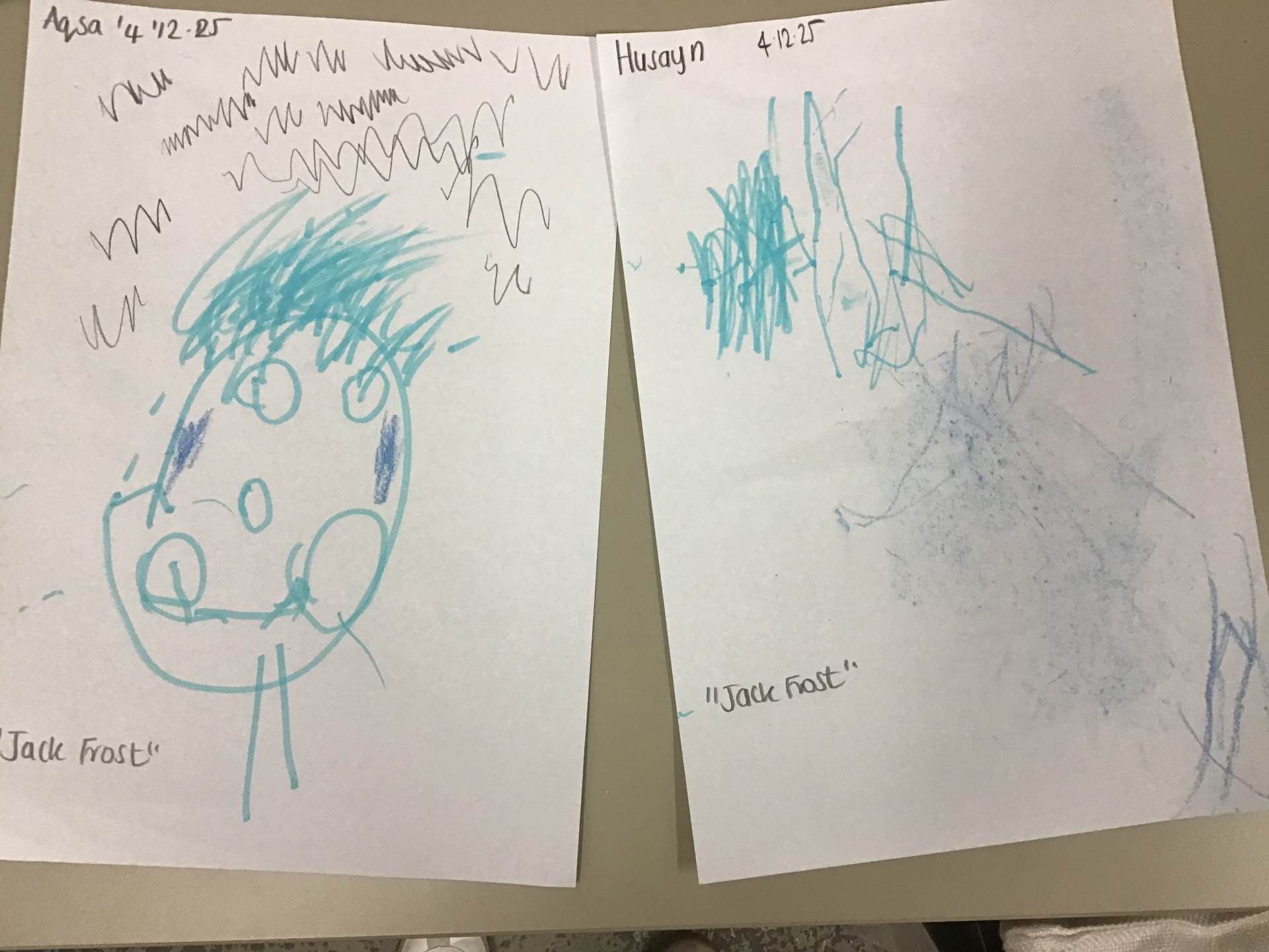 We have also enjoyed exploring Jack Frost and his Wintery ways. We discussed the magic around the character and the fact we never see him. The children shared their ideas and then we painted him. We used our expressive ideas.