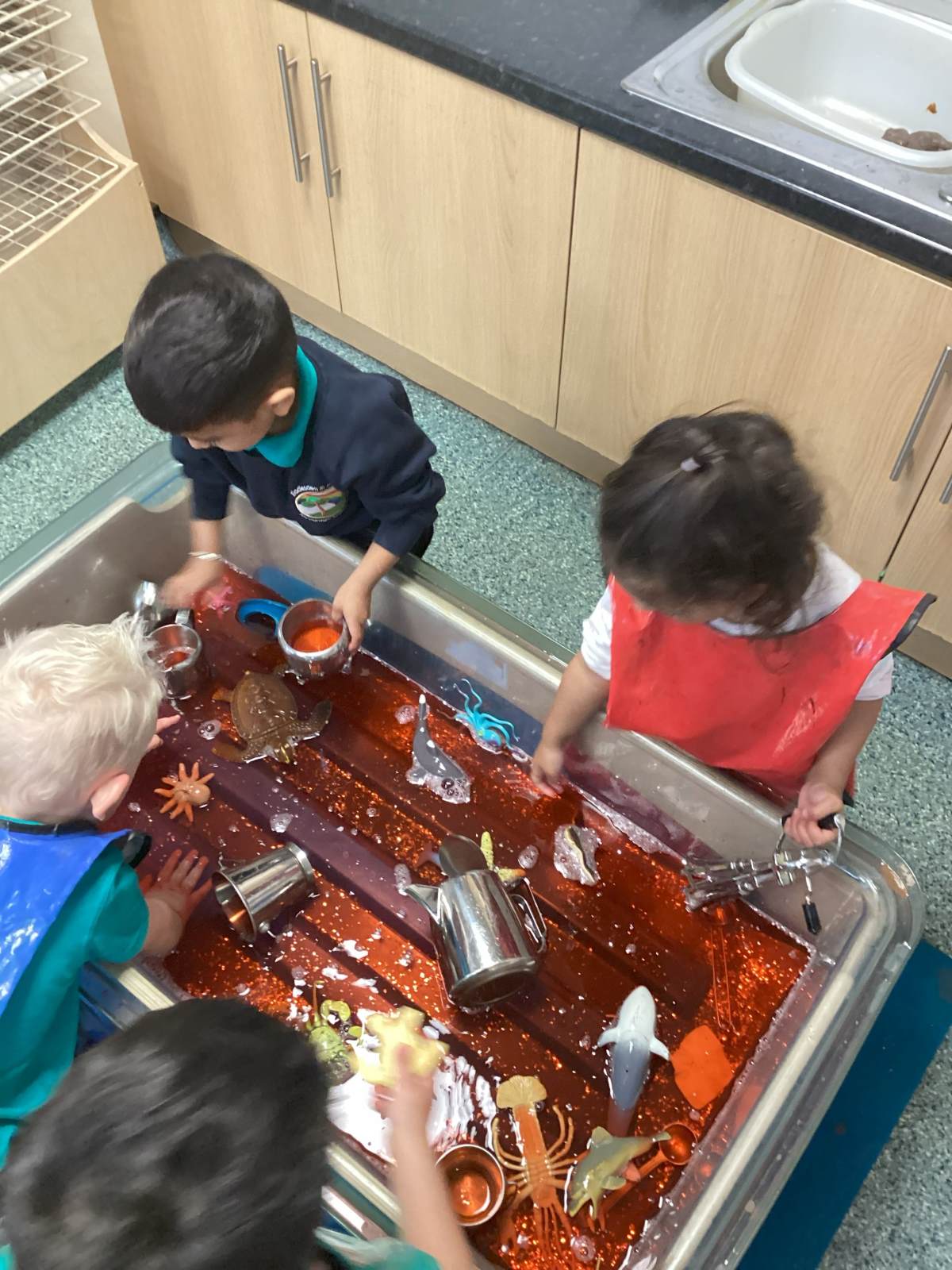 The water area is a great play for the children to learn about the world of pouring, filling, emptying and experimenting with different materials.