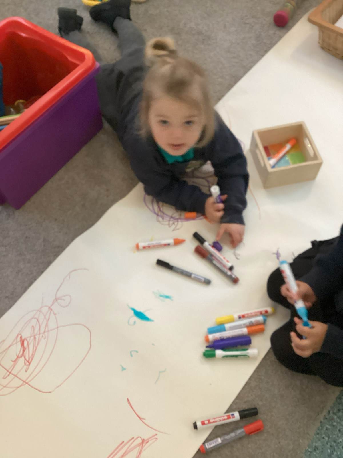 We love exploring which marks we can make in the creative area. The children have access to paint, crayons, pencils, glue and resources they can create beautiful pieces of artwork with!