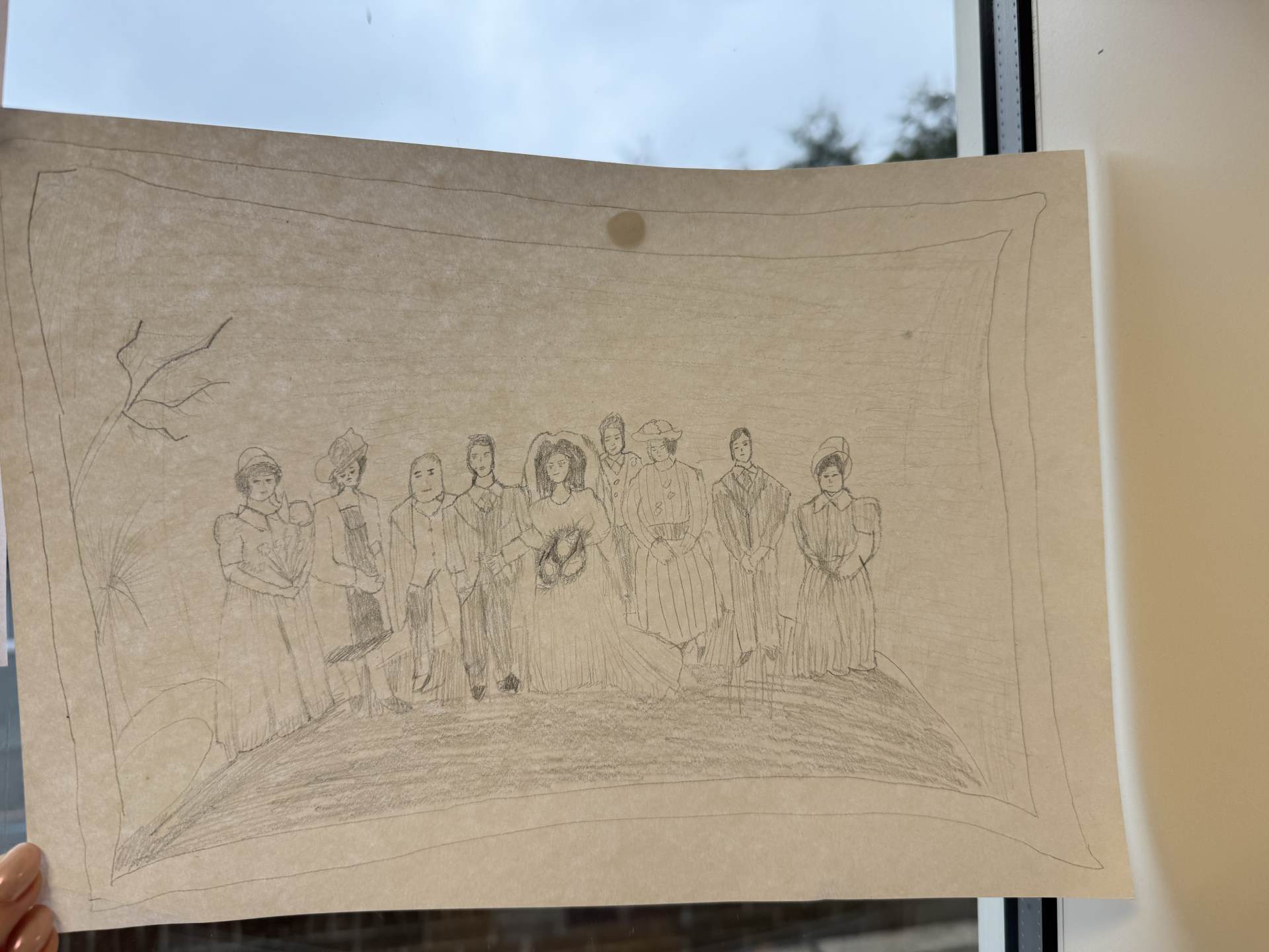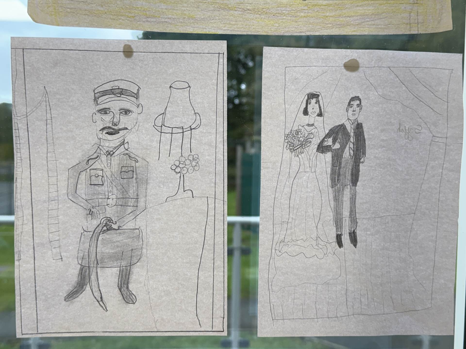 We then dove into one of the houses in our town and met a family who lived there during 1939. We discussed what their lives would be like and what their home would look like. We then created portraits to represent the family's past and the key events that they will have experienced.