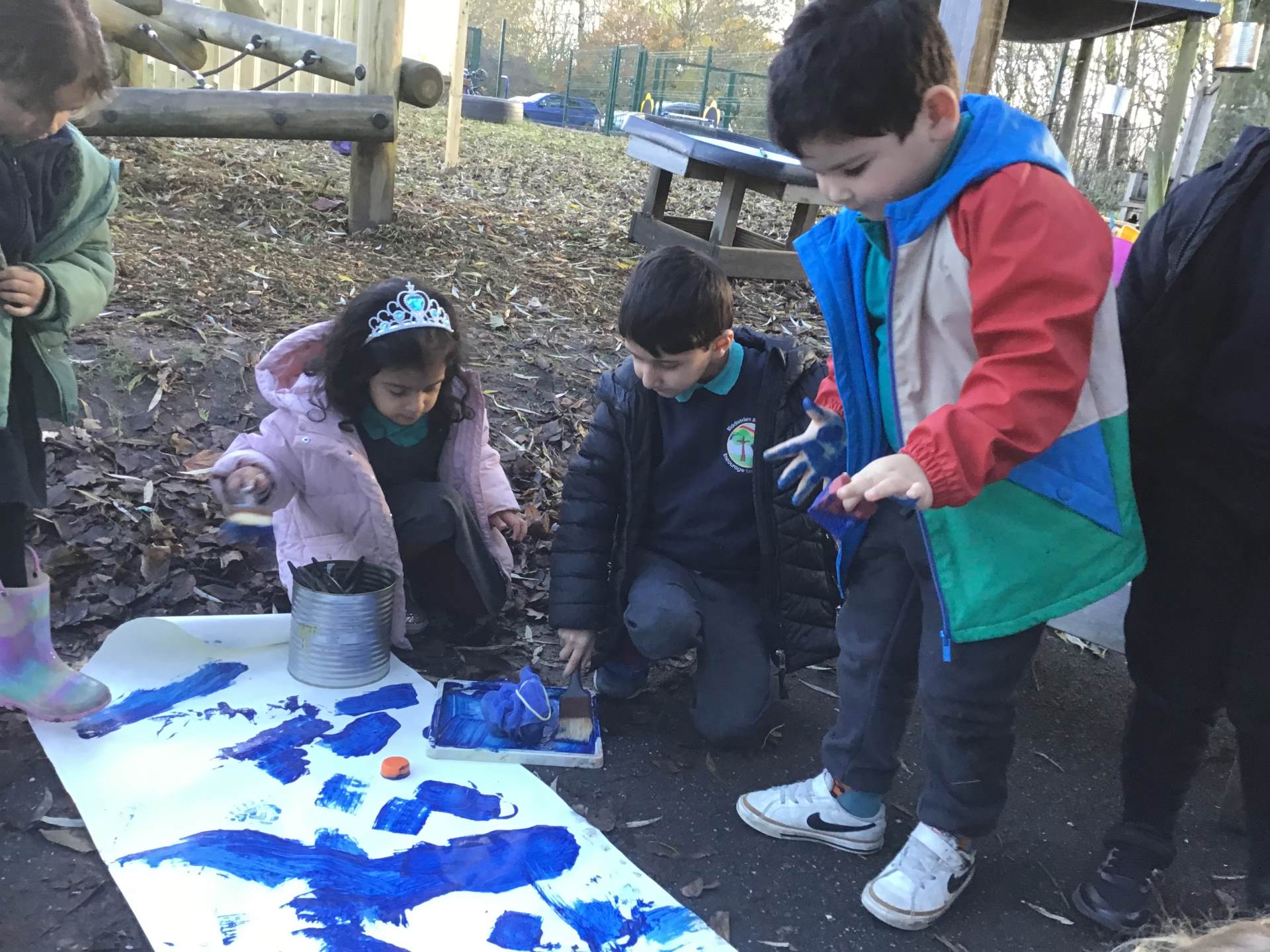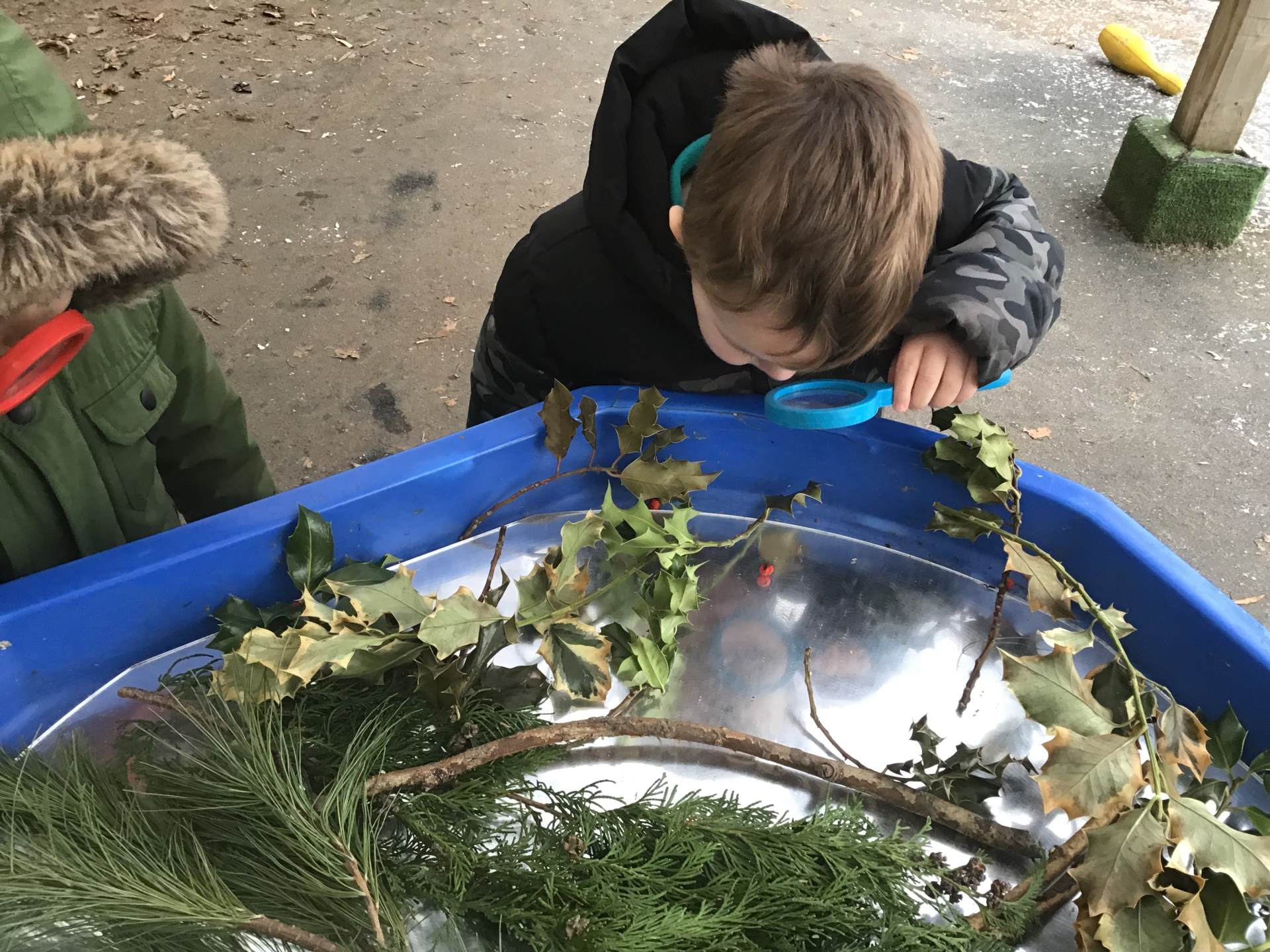 We came back to school after the holidays to a Wintery wonderland. We noticed that Jack Frost had been busy sparling the ground with his icy fingers. We enjoyed exploring the nursery garden and the Wintery weather throughout the week.