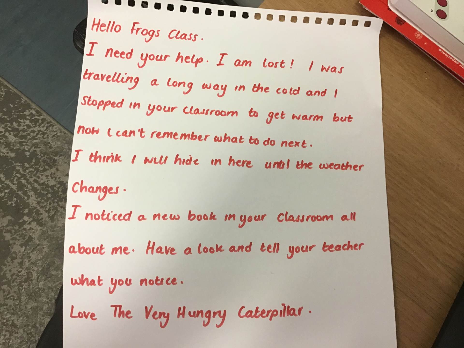 Our caterpillar sent a letter to say he was lost and was hiding in our classroom and he needed our help.