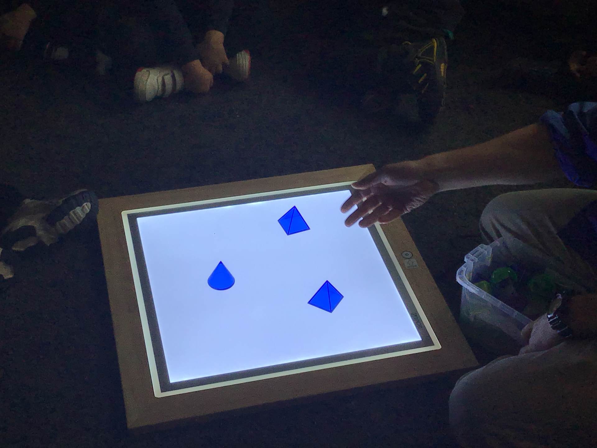 In Maths this week we have been continuing to learn about the number 3. The children enjoyed exploring the threeness of three thorough our new light box.