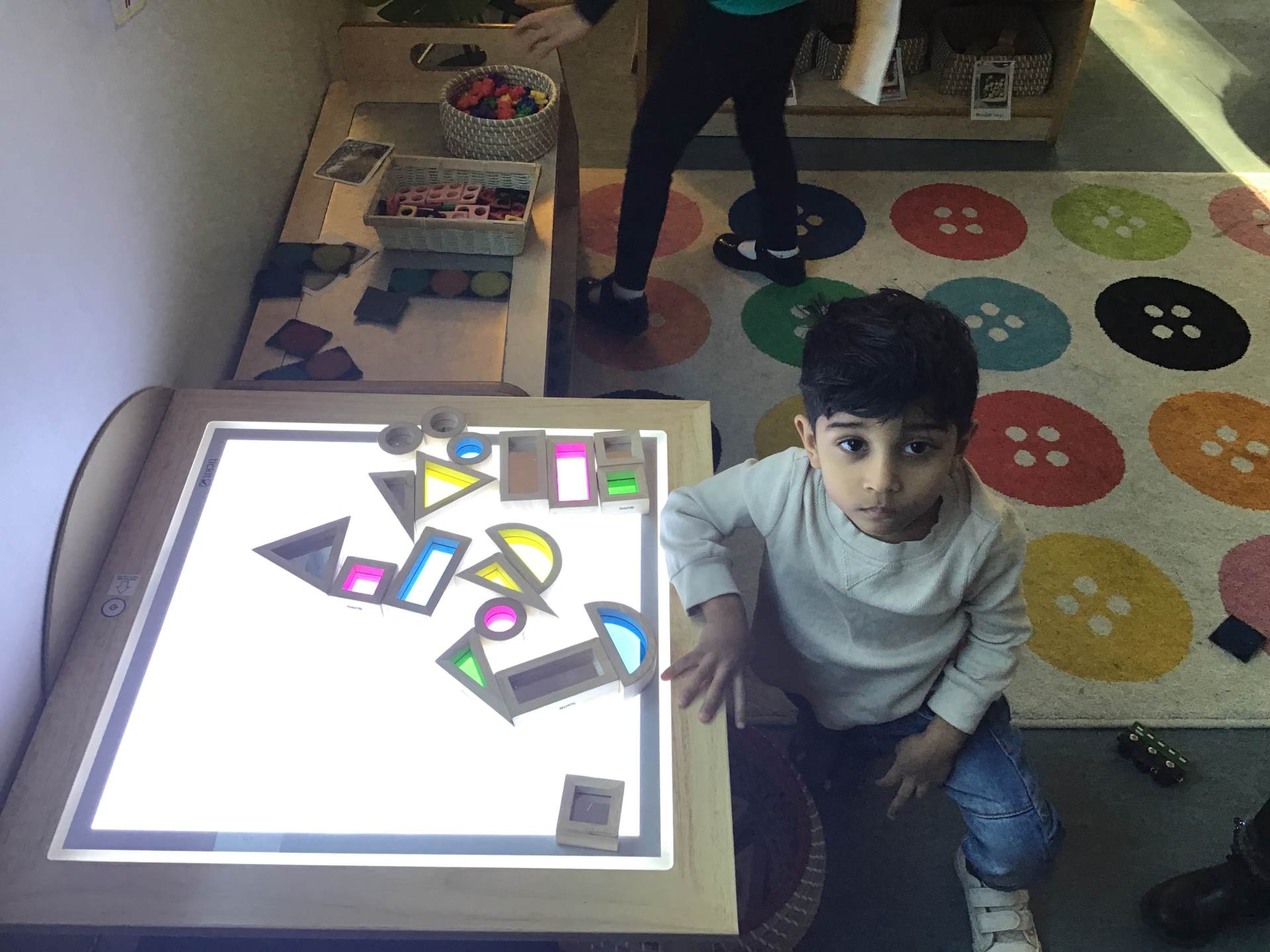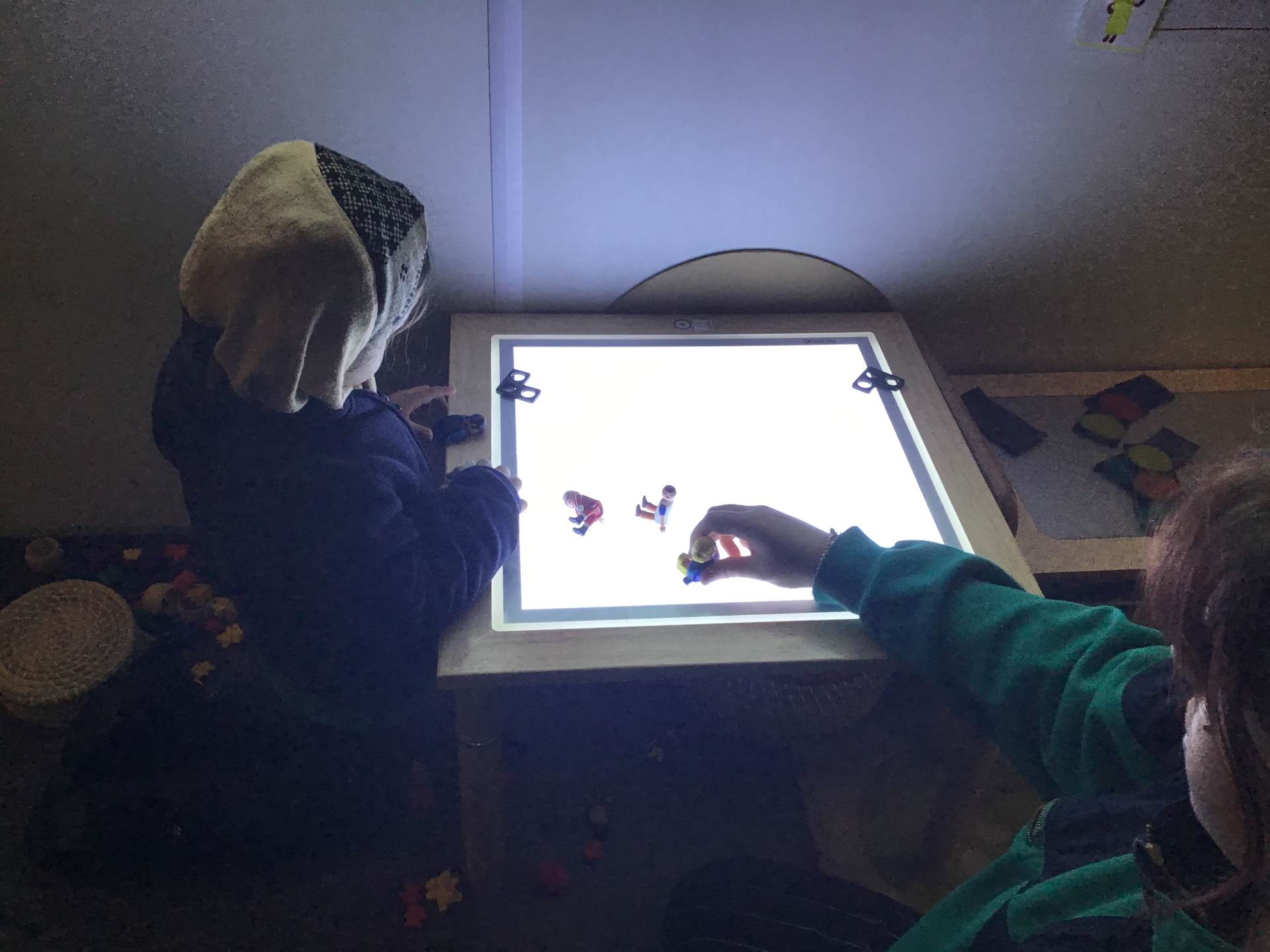 The children have enjoyed exploring light on our new table, the children have experimented with a variety of materials on the lightbox to see what happens when they sit on the light.