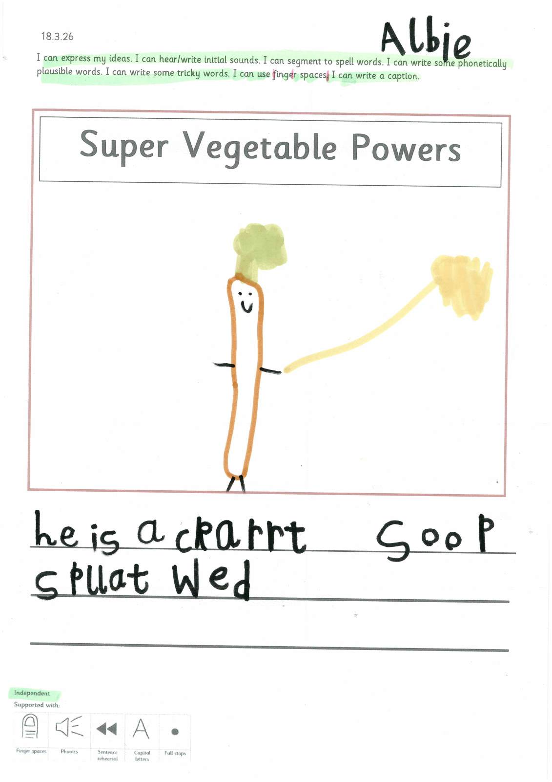 Supertato needs our help! He asked us to create our own Super Vegetable/fruit to help him protect our classroom.