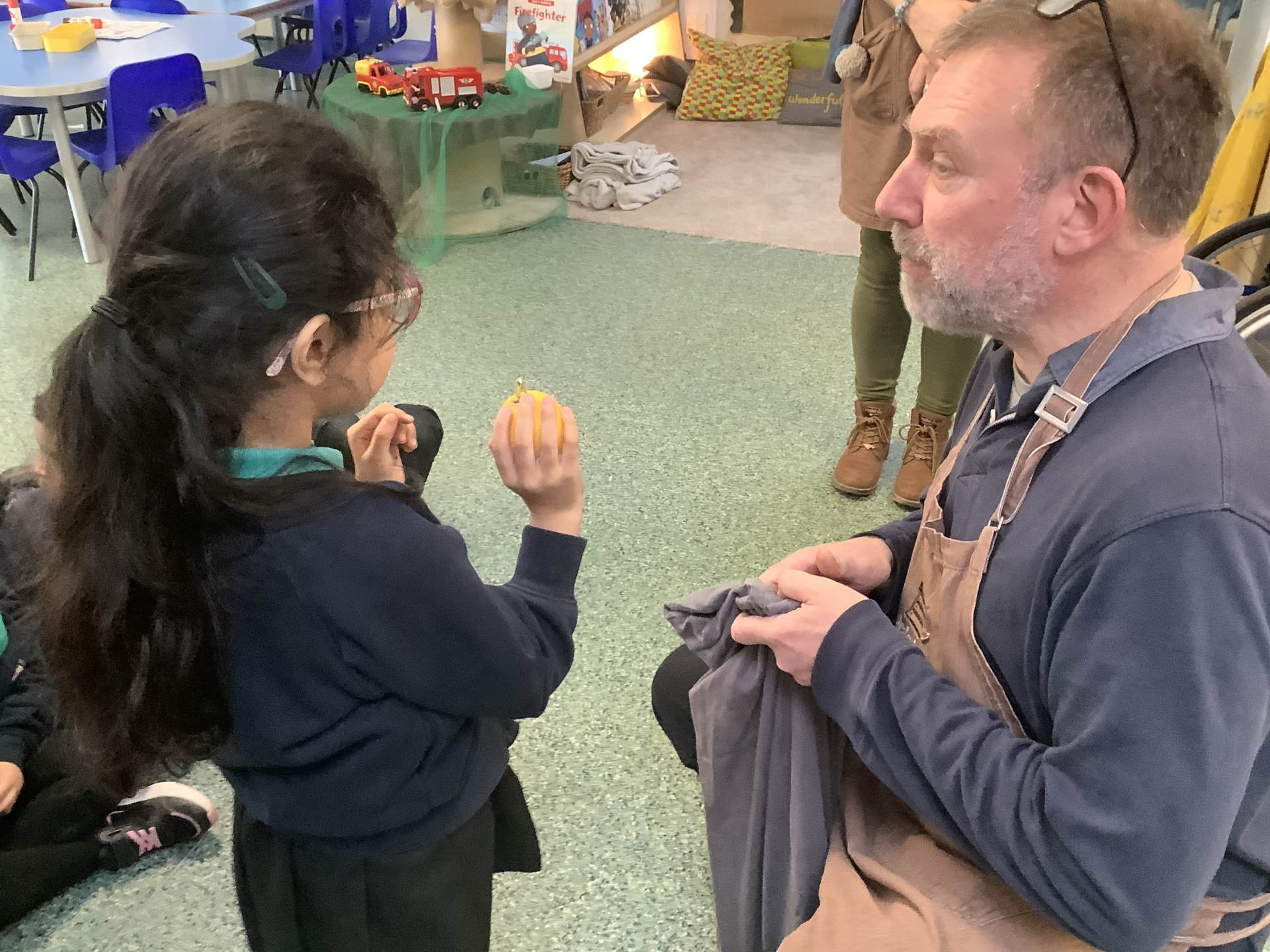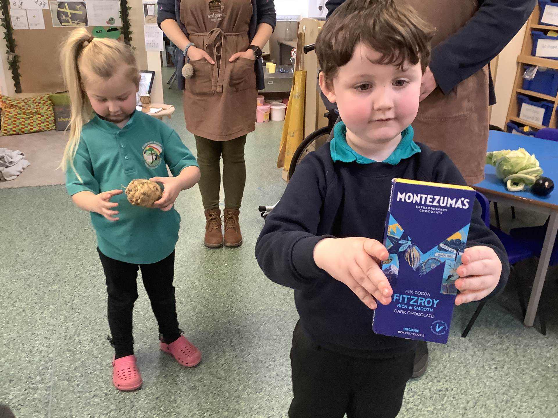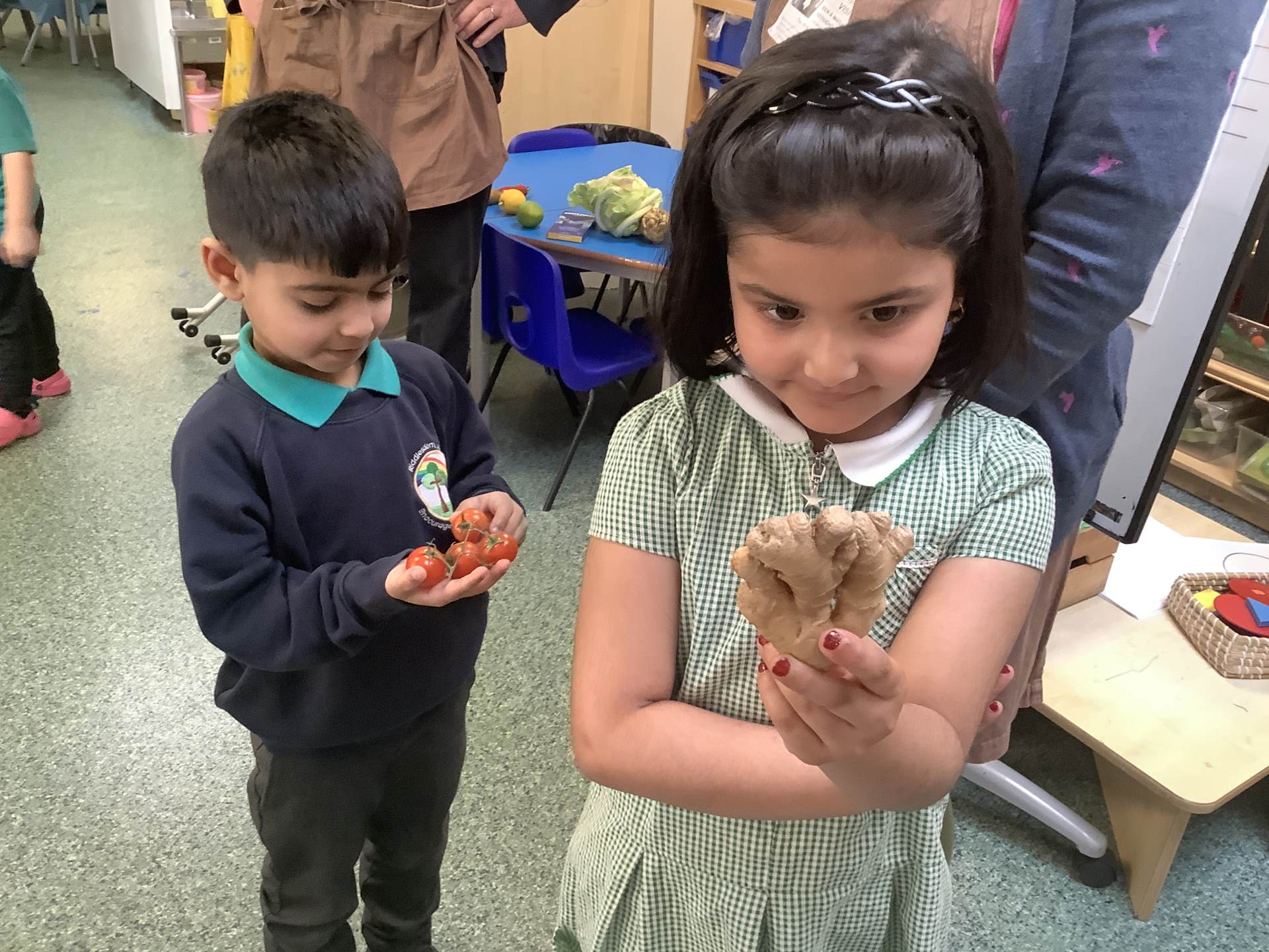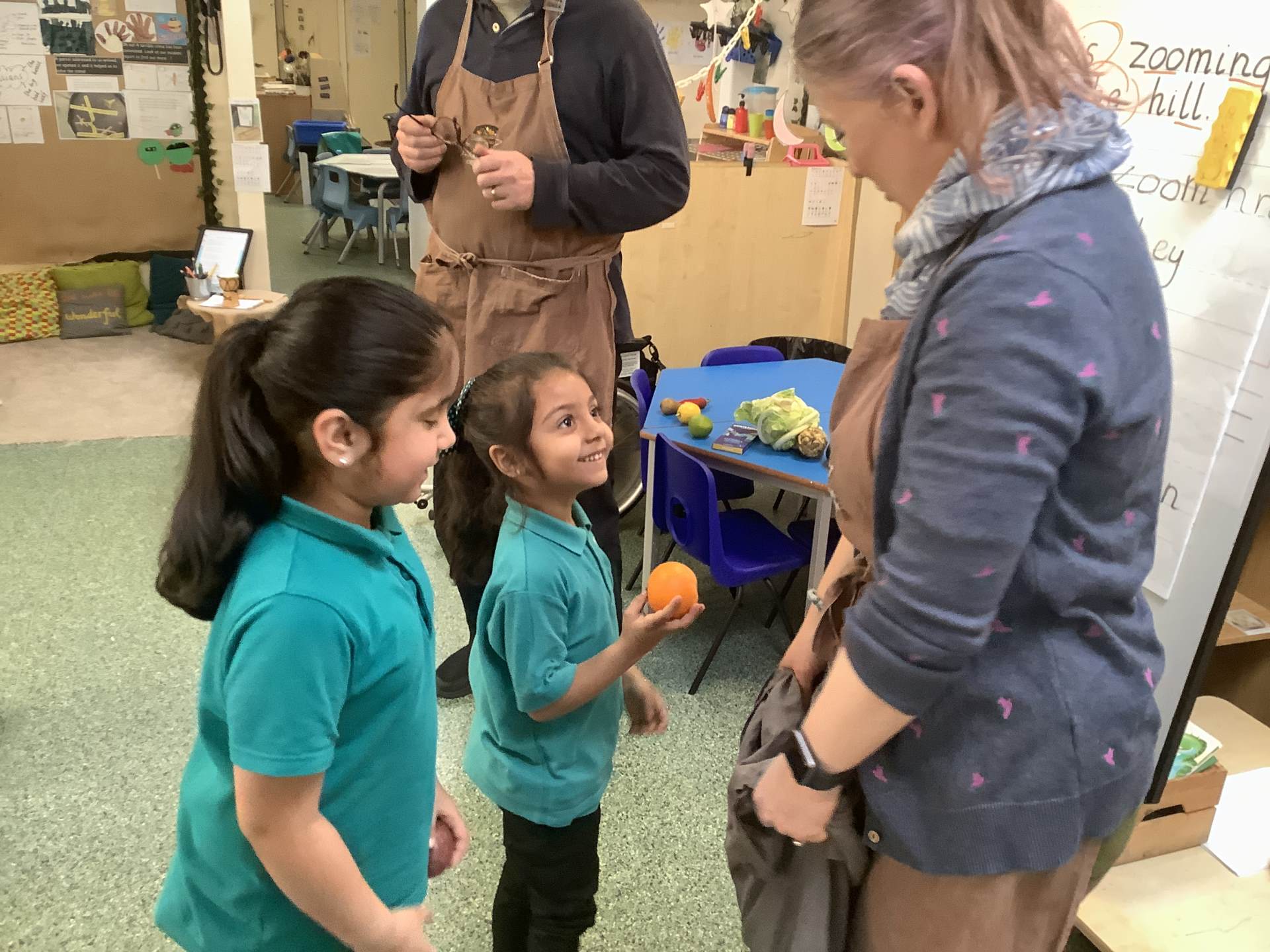 They brought us lots of fruit and vegetables to explore. Some we had never even heard of!
