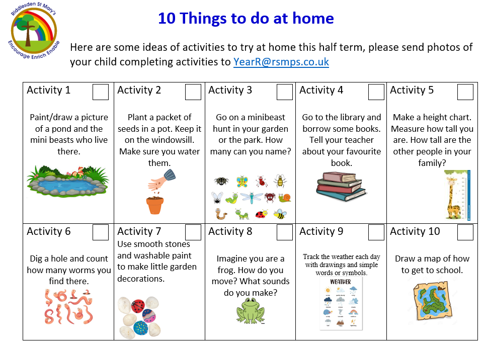 Below you will find our Spring 1 curriculum overview as well as '10 Things to do at home.'