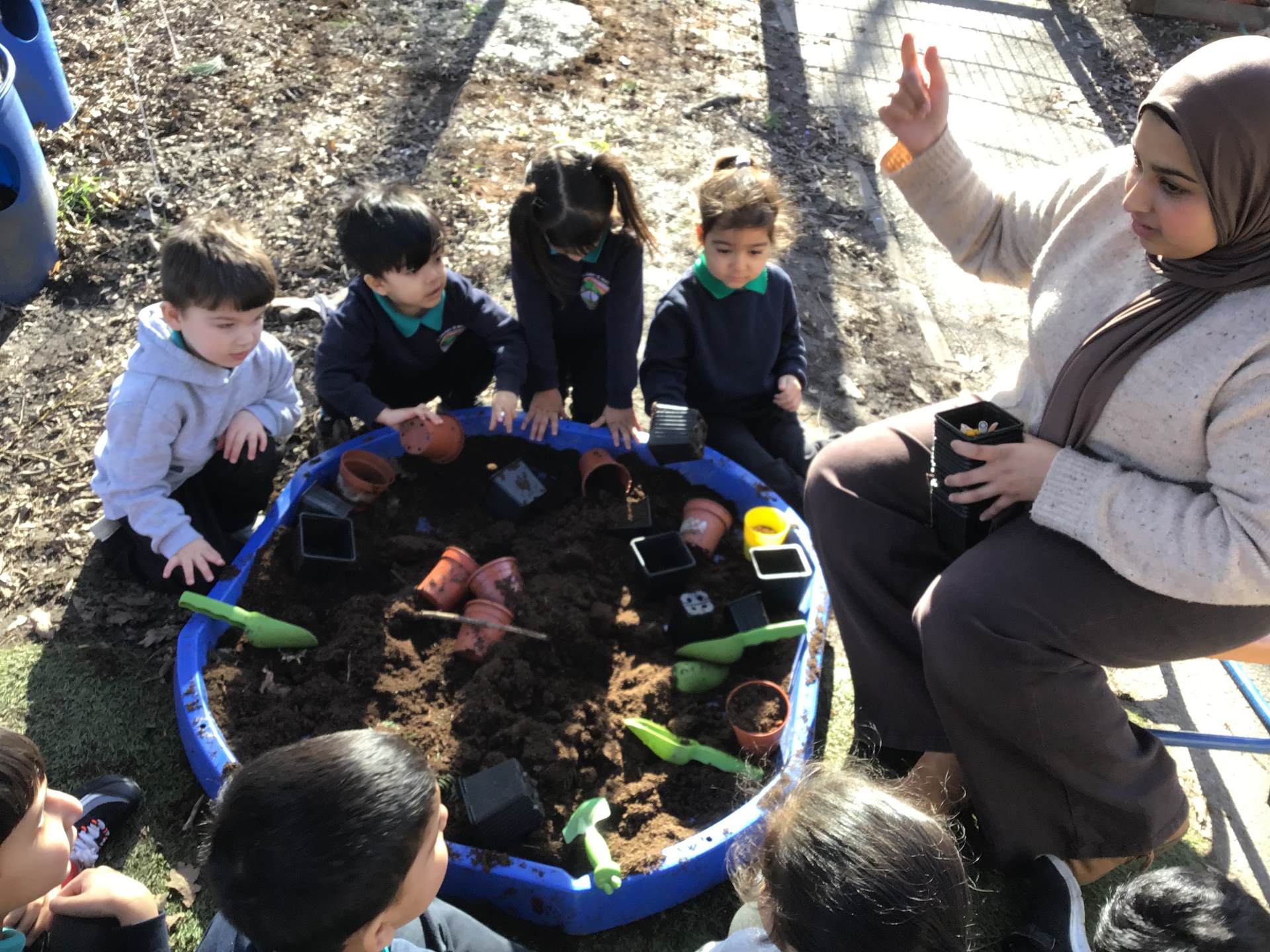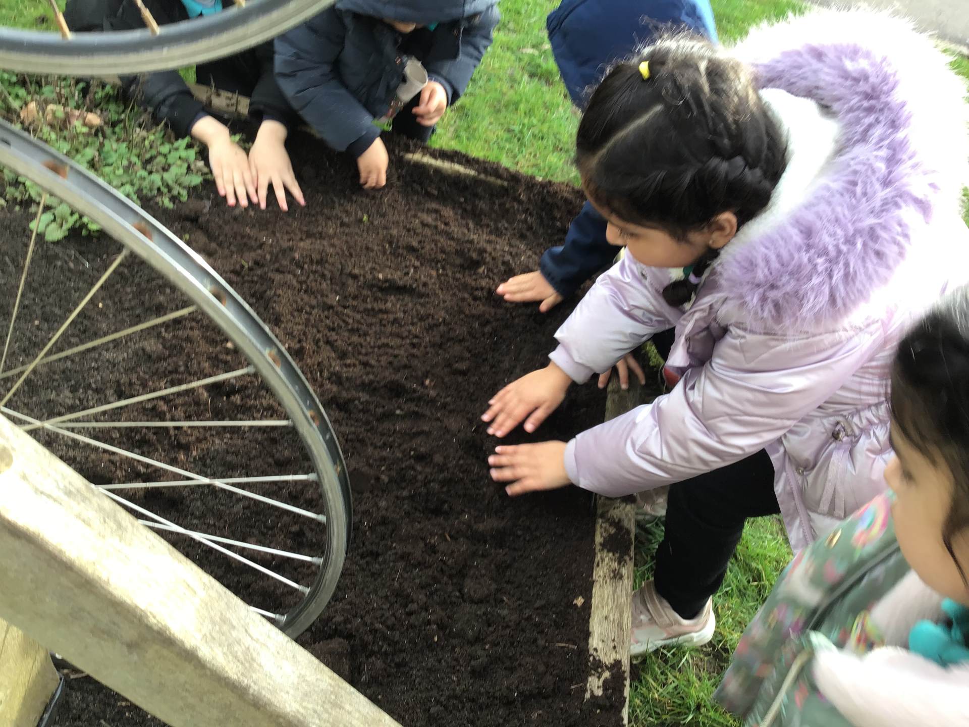 We had a letter from the top of the beanstalk from the giant explaining that fairytale land had run out of onions and garlic and could we plant some in the edible garden in school, this has helped us to begin learning about how plants grow and what they need to make sure they grow well.