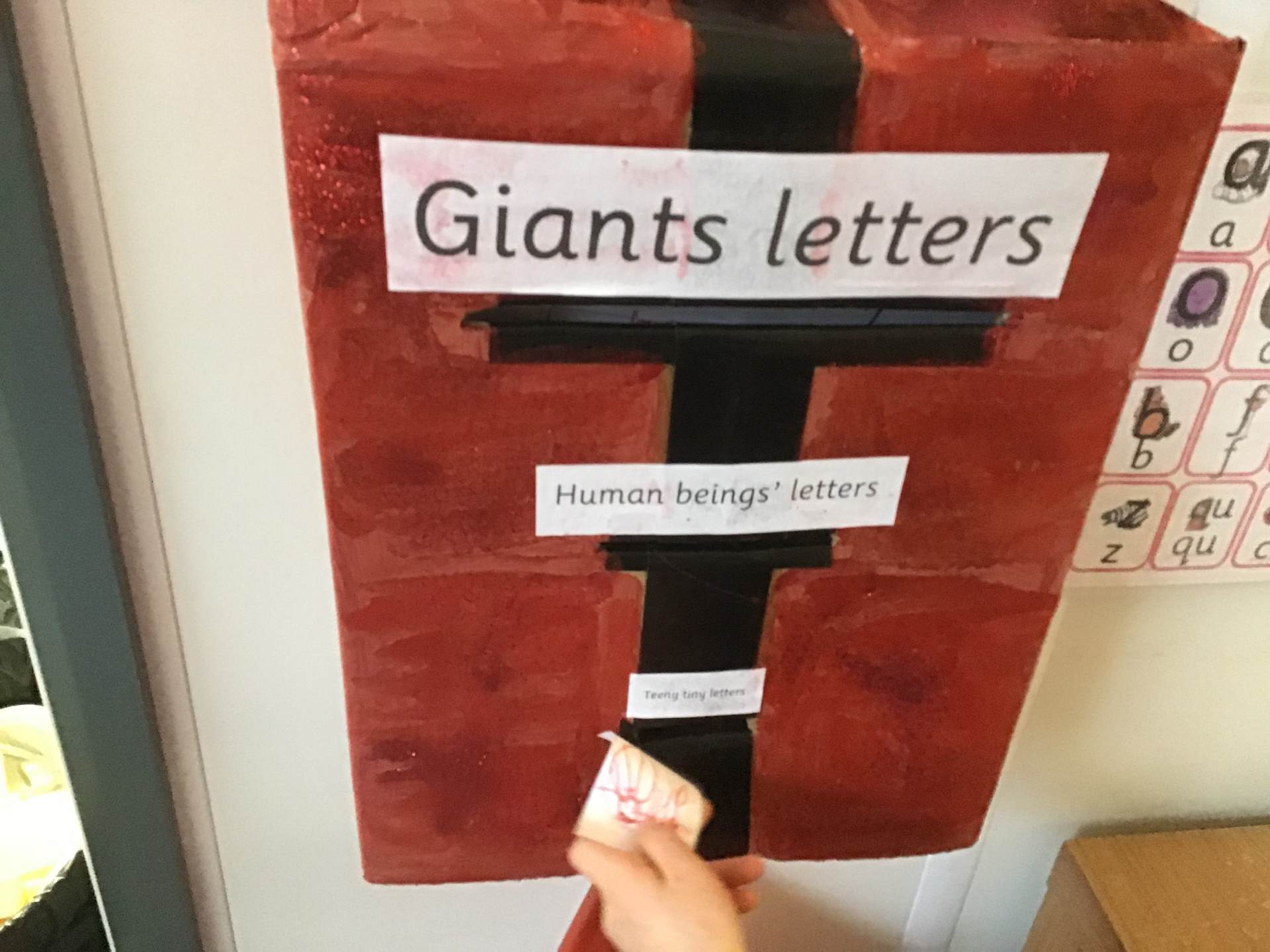We have been busy sending letters in our very special post box, it has a space to post teeny tiny letters, human sized letters and gigantic letters. We love using this area to practice our writing and to send letters to fairytale land. Take a look below at some of the letters we have sent.