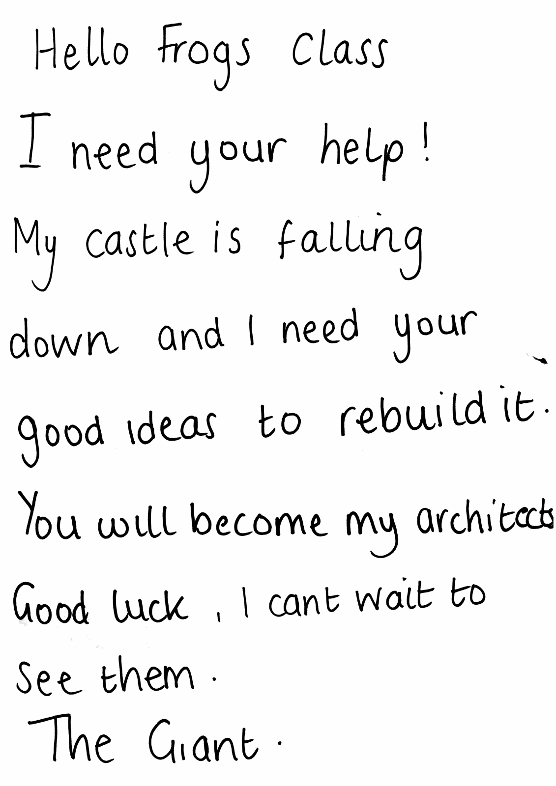 We received a letter from the giant. Even though we think he's quite scary, we decided to help him with his problem of building a new castle.