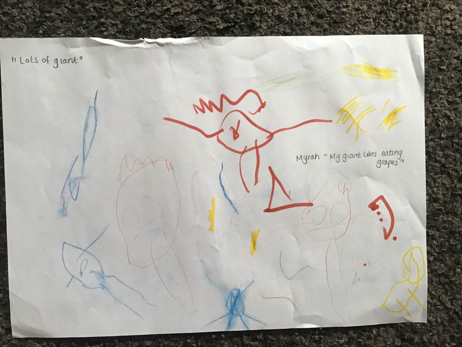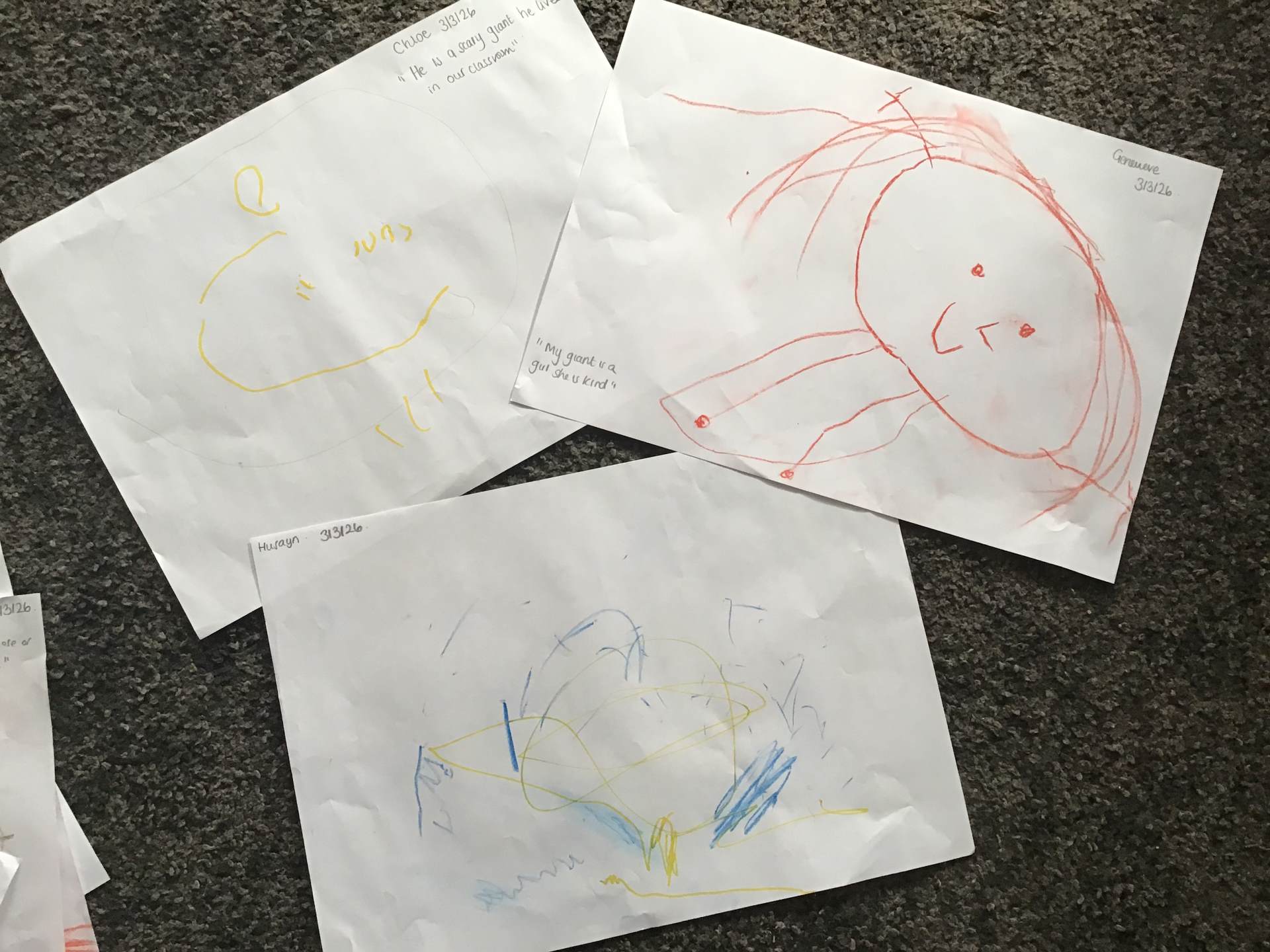 We also enjoyed doing some observational drawing of giants, we used picture prompts and our own ideas about what giants look like. The children are really noticing details and putting more detailed ideas into their pictures. Take a look at some of our amazing pictures.