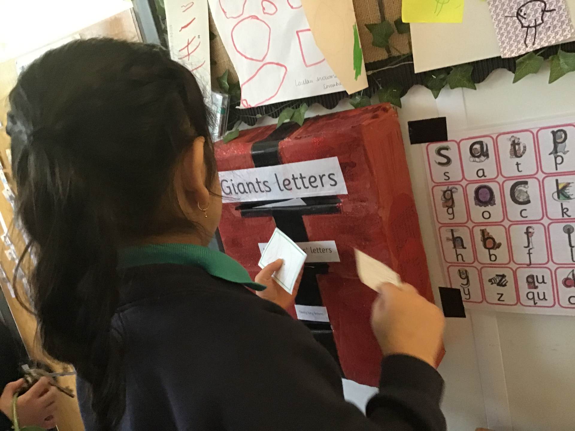 We have been busy sending letters in our very special post box, it has a space to post teeny tiny letters, human sized letters and gigantic letters. We love using this area to practice our writing and to send letters to fairytale land. Take a look below at some of the letters we have sent.