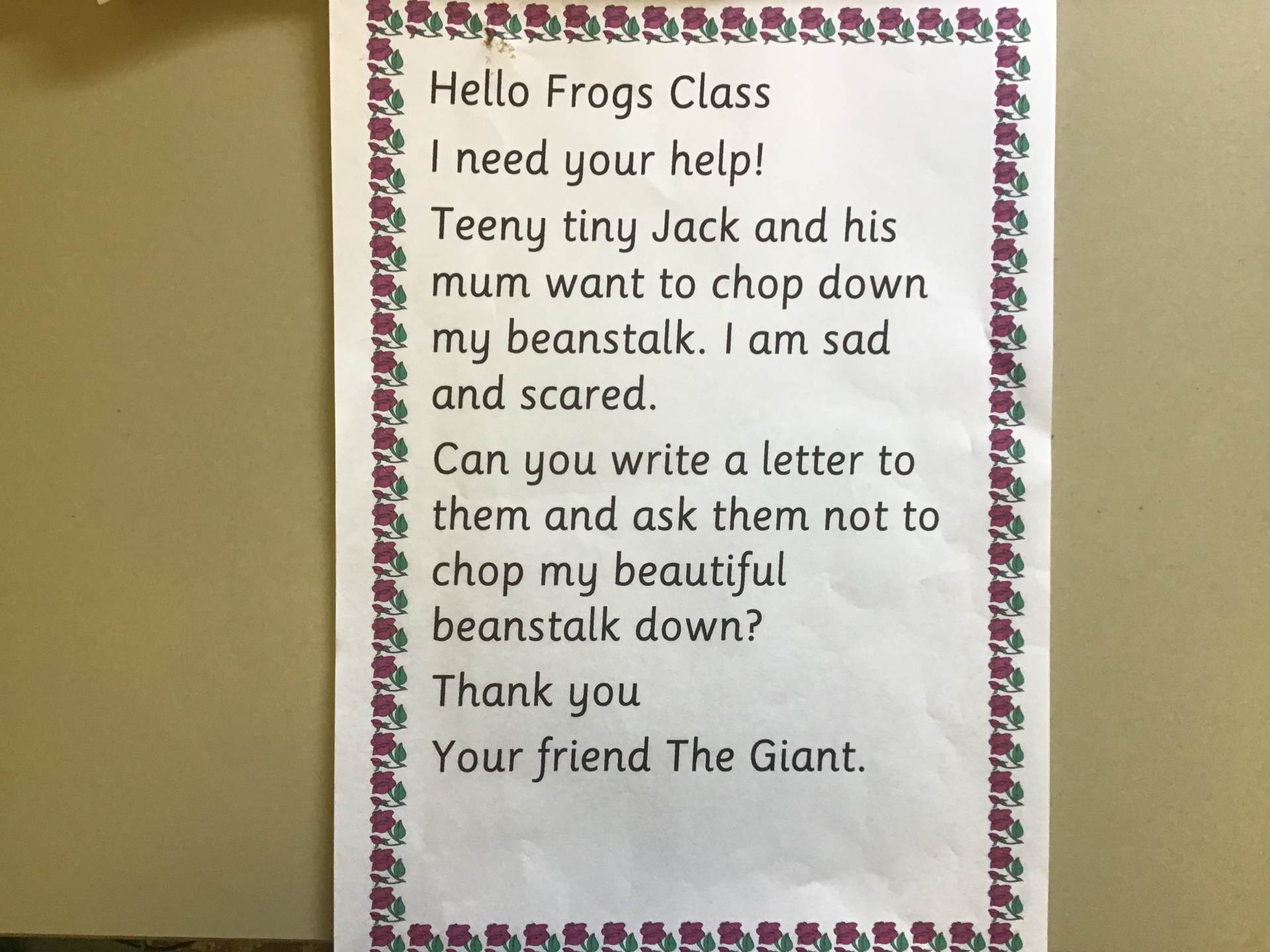 We began the week with a letter form the giant asking us to help him. We read the letter and talked about whether it was ok for Jack and his mum to chop the beanstalk down.